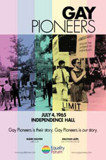 Produced in collaboration with PBS-affiliate WHYY, "Gay Pioneers" is a 30-minute documentary chronicling the first organized gay and lesbian civil rights demonstrations. These "Annual Reminders" took place in front of Independence Hall each Fourth of July from 1965 to 1969, paving the way for the Stonewall Uprising and the New York Pride Parade. www.gaypioneers.com. Price includes shipping. Available in DVD or VHS.